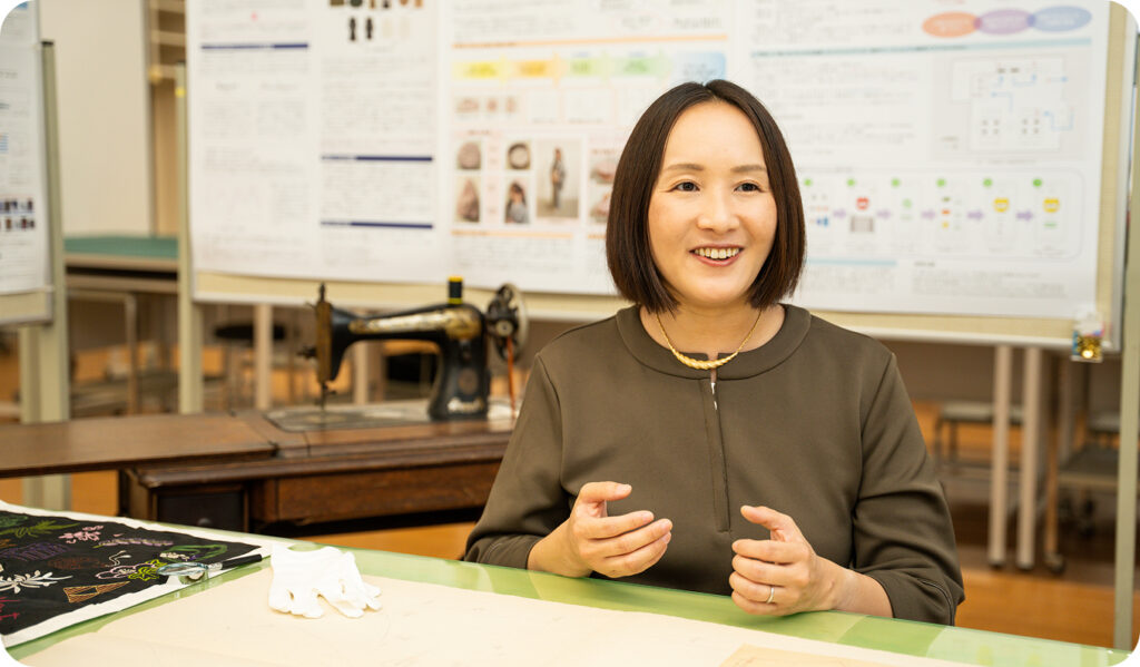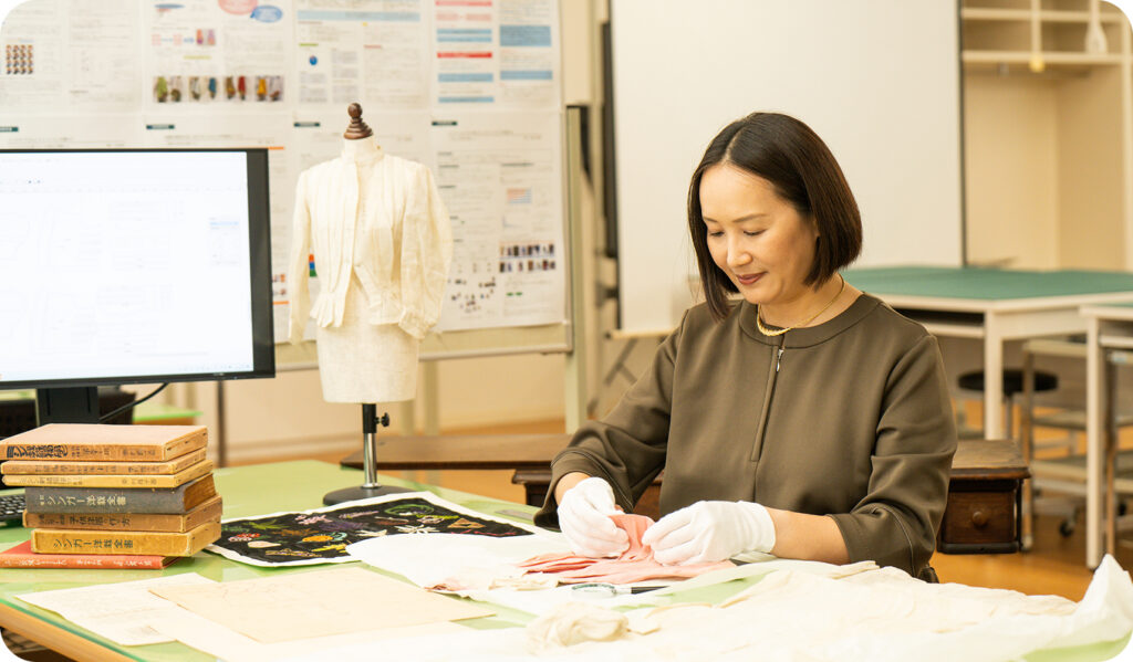 私は被服に関する研究を通じて、過去の資料が語る情報を“未来に生きるかたち”で残していきたいと考えています。当時の生活や価値観を、デジタルアーカイブという新しいかたちで記録し、人々が何を大切にしていたのかを次の世代にも伝えていく――それが私の研究の目的です。
